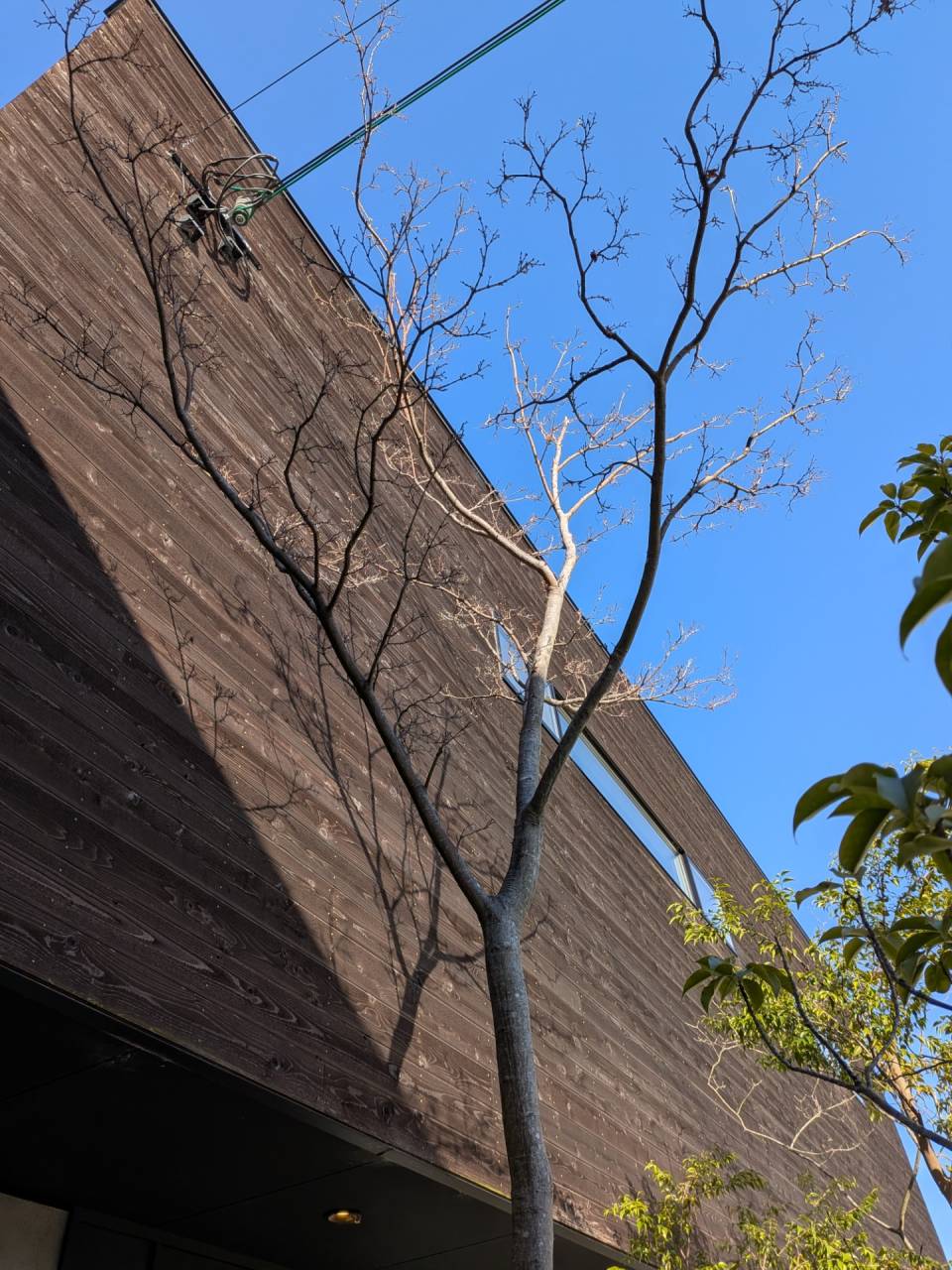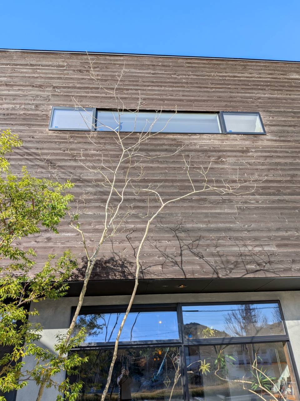 最近はこの地方でもちょくちょく見かけるようになってきた高木を使った外構植栽。